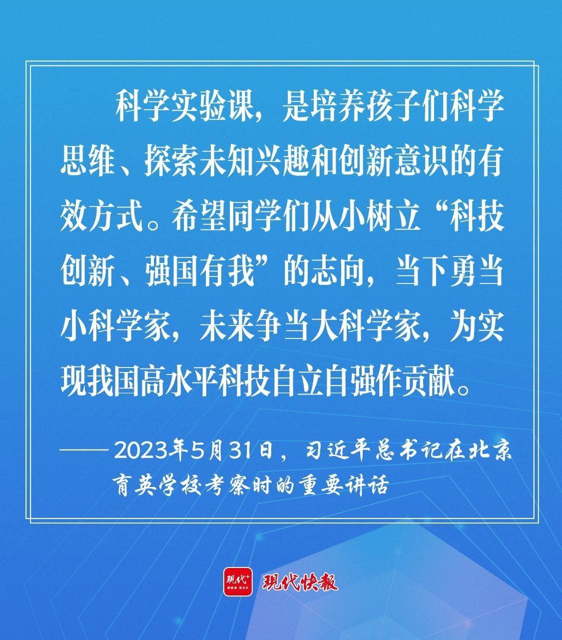 2023年5月,習(xí)近平總書記在北京育英學(xué)校考察時強調(diào),希望同學(xué)們從小樹立“科技創(chuàng)新、強國有我”的志向,當(dāng)下勇當(dāng)小科學(xué)家,未來爭當(dāng)大科學(xué)家,為實現(xiàn)我國高水平科技自立自強作貢獻。