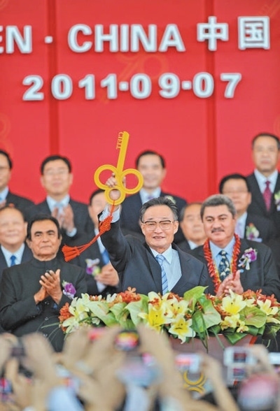 二〇一一年九月七日,吳邦國(guó)同志在福建廈門(mén)出席第十五屆中國(guó)國(guó)際投資貿(mào)易洽談會(huì)開(kāi)館式。新華社記者 張國(guó)俊攝