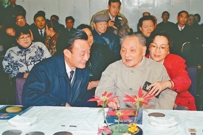 1992年2月10日,鄧小平同志在上海貝嶺微電子制造有限公司參觀時(shí)與吳邦國(guó)同志交談。新華社記者 柳中央攝