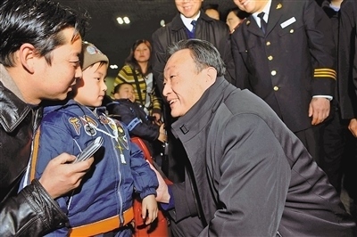 2008年2月3日,吳邦國(guó)同志在北京西站候車(chē)室與旅客交談。新華社記者 李 濤攝