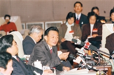 1994年3月,時(shí)任上海市委書(shū)記的吳邦國(guó)同志在全國(guó)兩會(huì)上海代表團(tuán)全團(tuán)會(huì)議上。新華社記者 劉建國(guó)攝