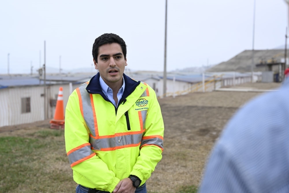 2024年6月21日,秘魯青年丹尼爾·哈雷斯在錢凱港項(xiàng)目現(xiàn)場(chǎng)接受媒體采訪。項(xiàng)目啟動(dòng)之初,丹尼爾·哈雷斯還是一名剛?cè)肼殘?chǎng)的實(shí)習(xí)生,如今27歲的他已成長(zhǎng)為項(xiàng)目工程部合同管理員。隨著錢凱港建設(shè)不斷推進(jìn),項(xiàng)目的工作崗位在當(dāng)?shù)爻蔀槟贻p人就業(yè)的熱門選項(xiàng)。