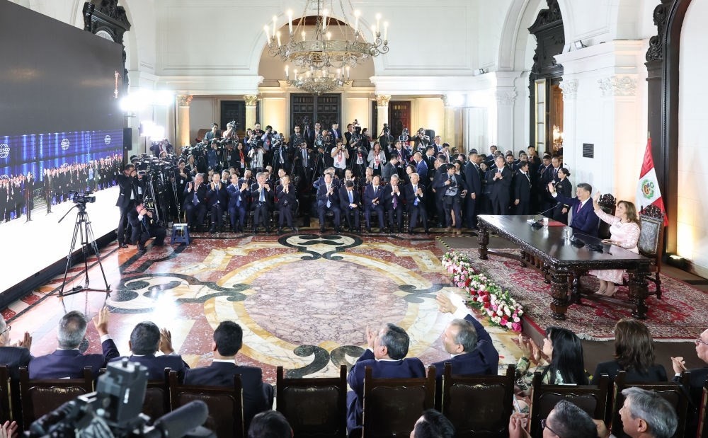當(dāng)?shù)貢r(shí)間11月14日晚,國(guó)家主席習(xí)近平同秘魯總統(tǒng)博魯阿爾特在利馬總統(tǒng)府以視頻方式共同出席錢凱港開(kāi)港儀式。