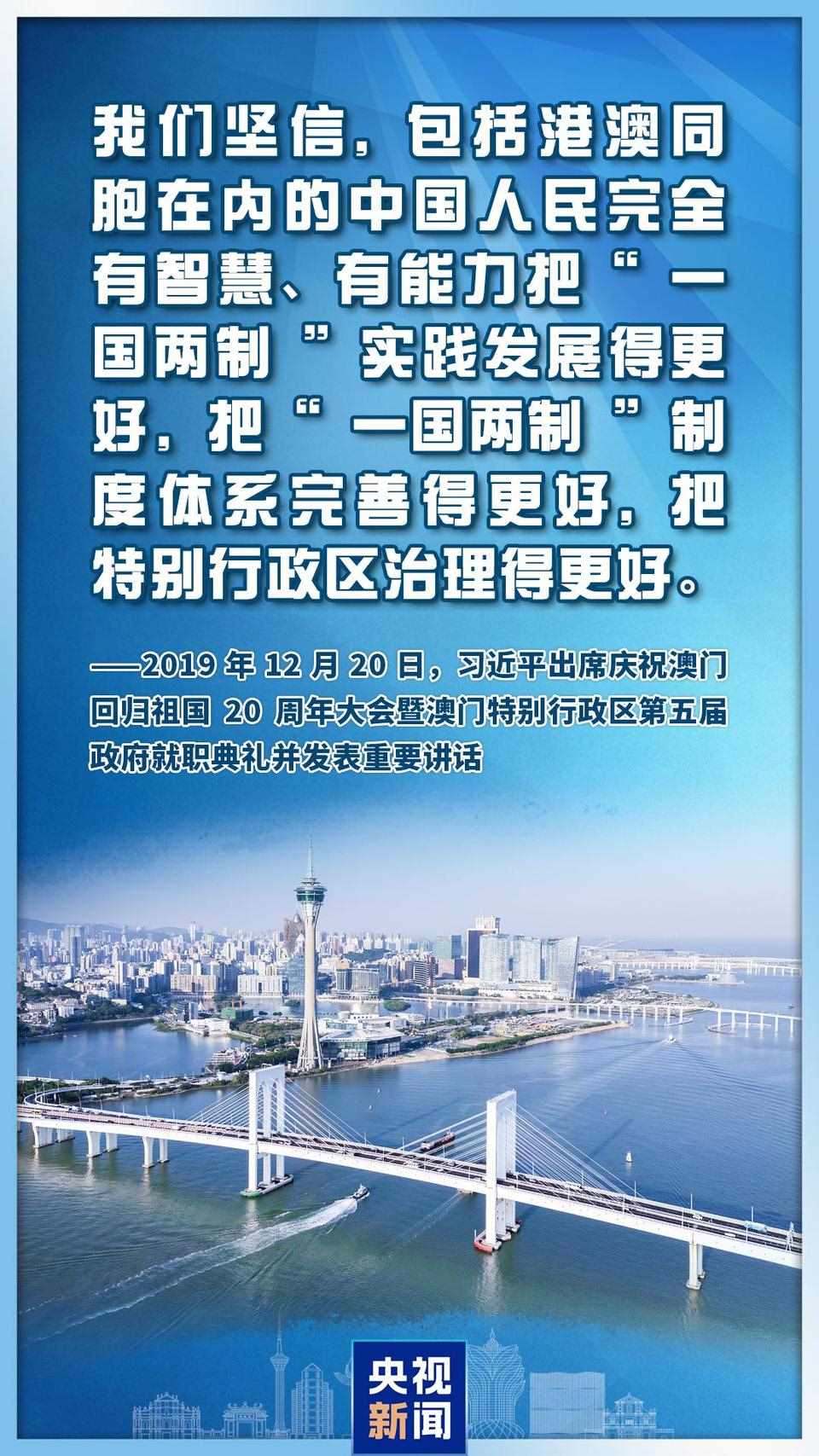 11月1日,在會(huì)見澳門特別行政區(qū)候任行政長(zhǎng)官岑浩輝時(shí),習(xí)近平主席指出,中央將繼續(xù)全面準(zhǔn)確、堅(jiān)定不移貫徹“一國(guó)兩制”、“澳人治澳”、高度自治的方針,確保不會(huì)變、不走樣。