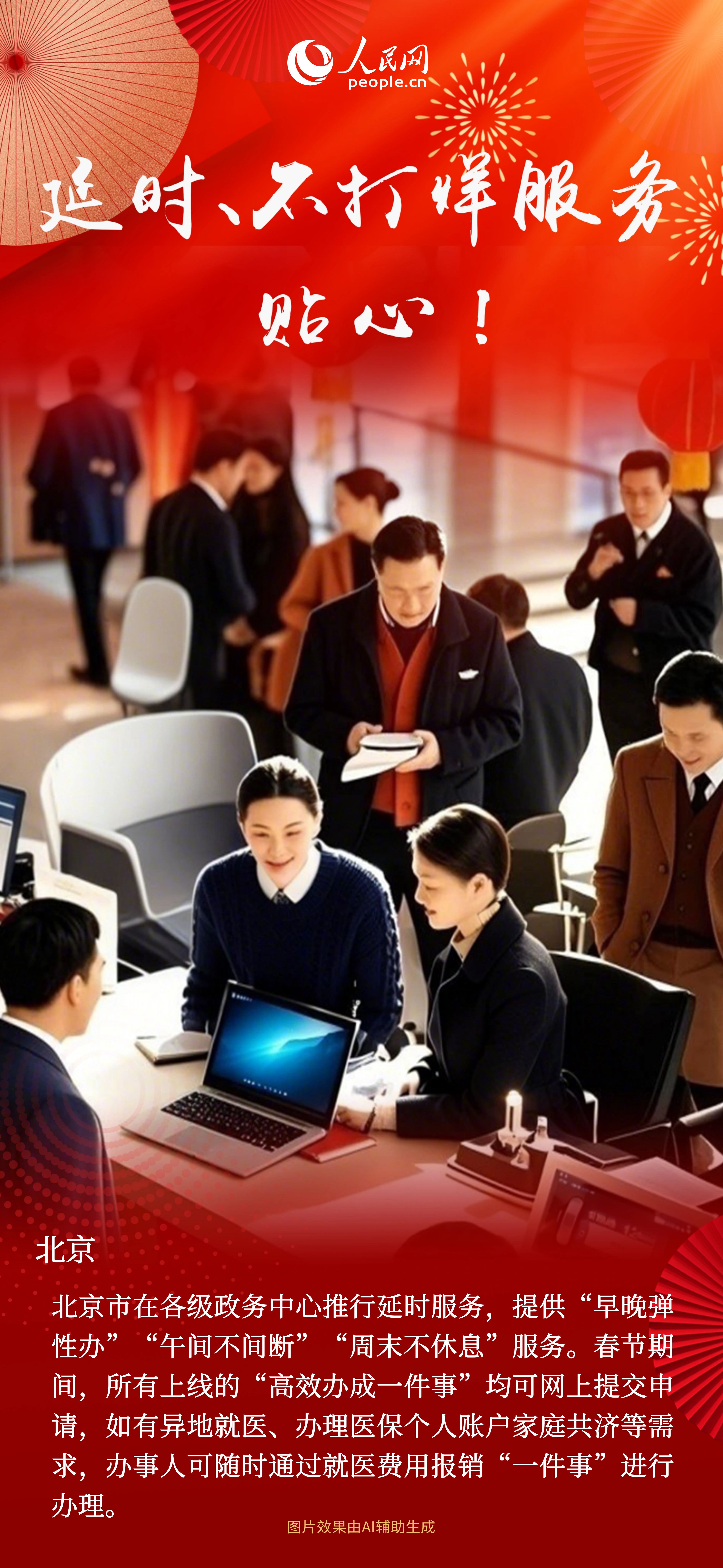 “一件接著一件辦”“這件辦完再下班”“幫辦代辦少操心”.......臨近春節(jié)假期,國家政務(wù)服務(wù)平臺上線了2025春節(jié)服務(wù)專區(qū),集合出行、文旅、民生、天氣等多項服務(wù),各地也紛紛推出服務(wù)不打烊、節(jié)日辦事專場等一系列便民舉措。為企業(yè)群眾提供暖心、安心的政務(wù)服務(wù),讓大家過節(jié)無憂、辦事不愁。