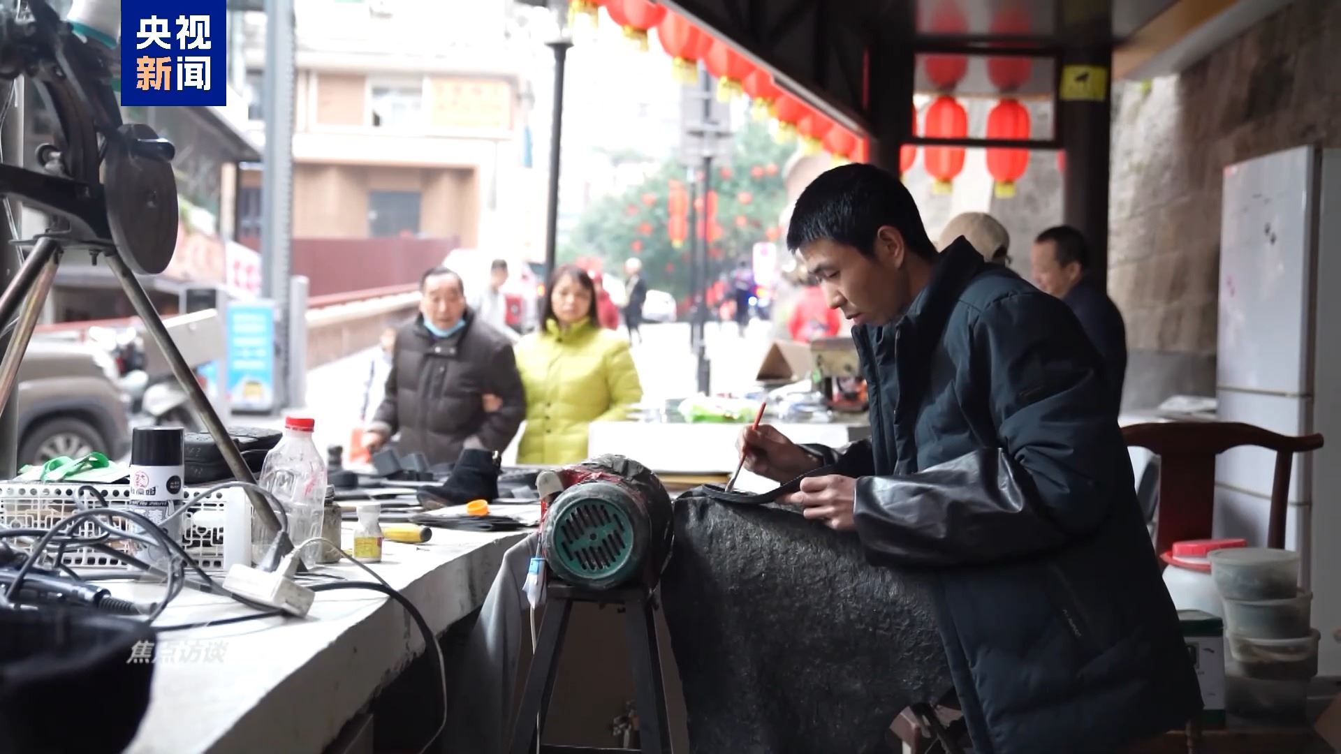 春節(jié)前幾天,大家都忙著備年貨、趕工期。在民主村的“惠民巧匠坊”,修鞋匠黃德軍更是從早忙到晚。