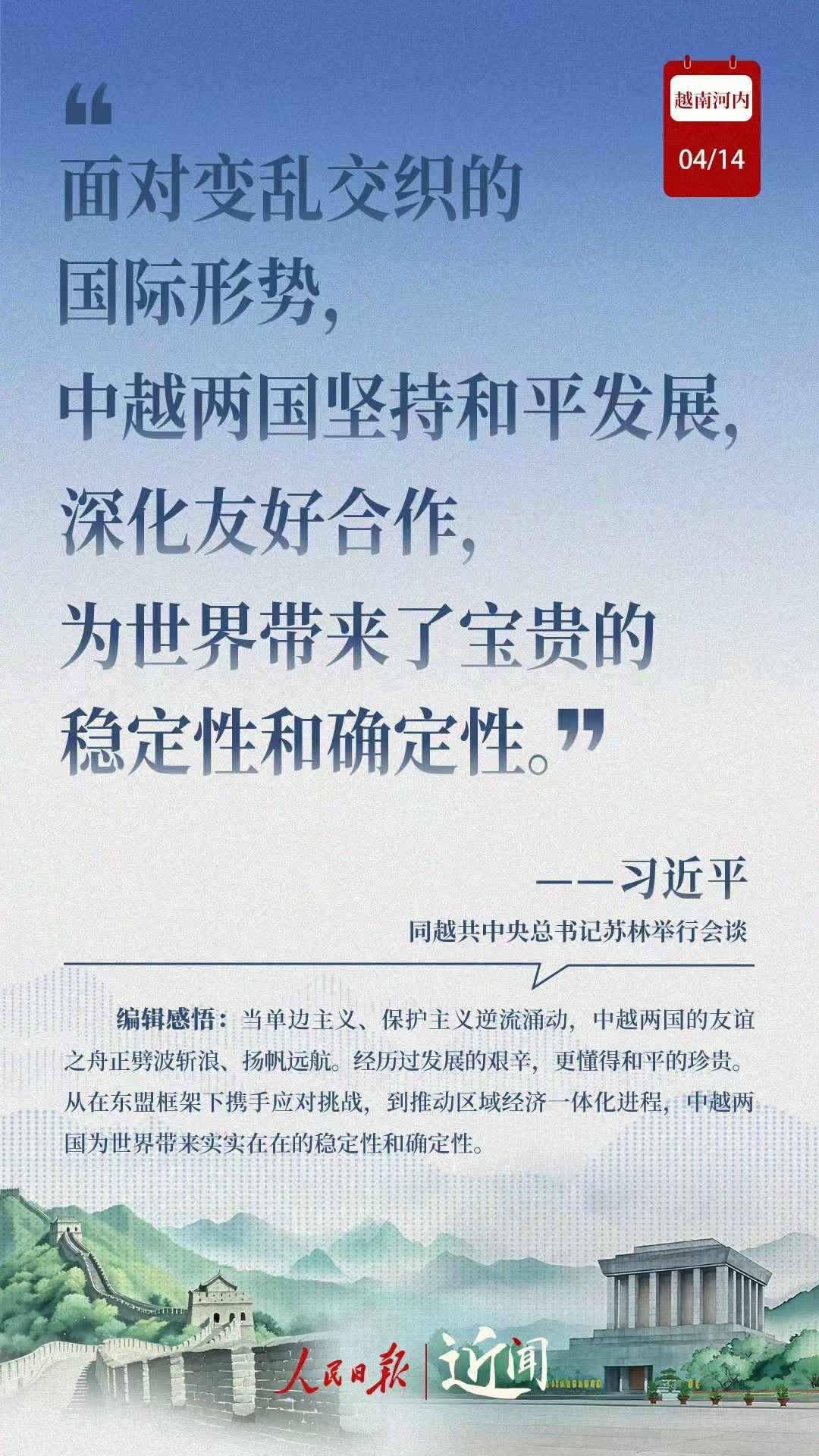 “小船孤篷經(jīng)不起驚濤駭浪,同舟共濟(jì)方能行穩(wěn)致遠(yuǎn)”“中越關(guān)系根基在人民、血脈在人民、力量在人民”……透過這些話,一覽此次越南之行。