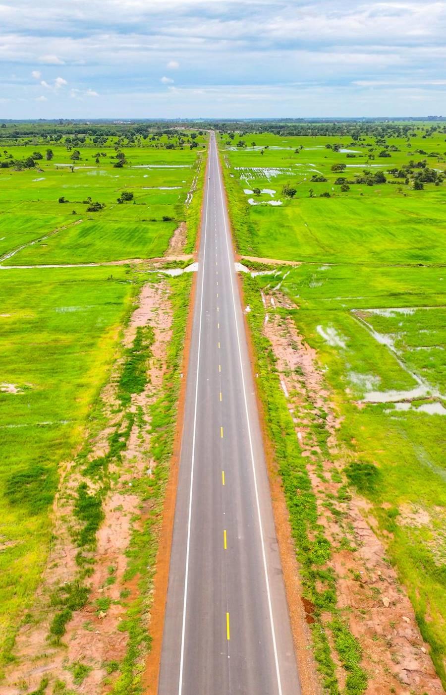 這是2024年7月14日在柬埔寨特本克蒙省拍攝的71C號(hào)國(guó)家公路(無(wú)人機(jī)照片)。新華社發(fā)(尼多拉攝)