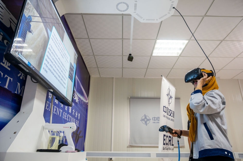 2021年11月9日,在位于彭亨州馬蘭的馬來西亞東海岸鐵路項(xiàng)目安全教育培訓(xùn)中心,一名工作人員借助VR技術(shù)學(xué)習(xí)安全知識。為確保項(xiàng)目安全推進(jìn),中國交通建設(shè)集團(tuán)有限公司在承建的馬東鐵項(xiàng)目沿線設(shè)立了多個(gè)虛擬現(xiàn)實(shí)和實(shí)體體驗(yàn)安全教育培訓(xùn)中心,借助沉浸式3D技術(shù)與VR設(shè)備,模擬了近百種潛在的施工現(xiàn)場危險(xiǎn)情況,有效提升了項(xiàng)目員工的安全意識和技能水平。