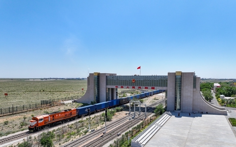 6月22日,一列中歐班列通過內(nèi)蒙古二連浩特鐵路口岸入境。