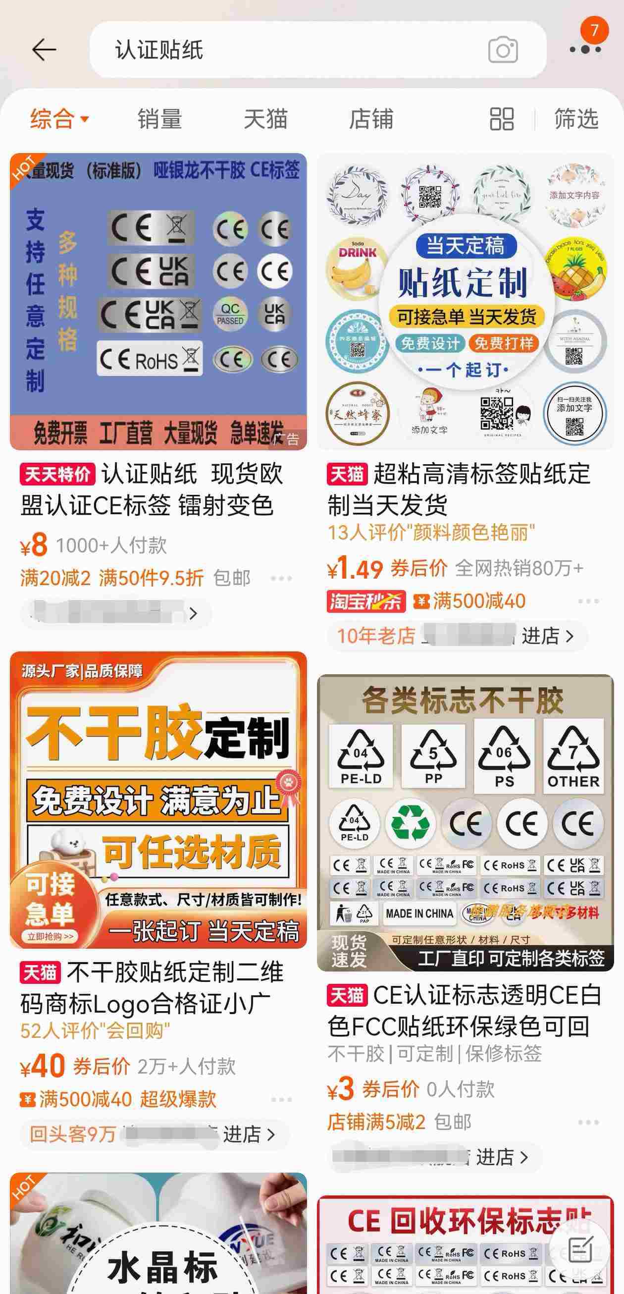 不過,這卻變成了一些人眼中的“商機(jī)”。中國新聞網(wǎng)《民生調(diào)查局》記者在部分電商平臺(tái)發(fā)現(xiàn),“3C貼紙”目前仍有售賣,甚至可以隨意定制。