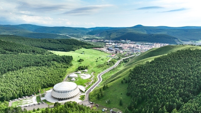 7月4日拍攝的內(nèi)蒙古興安盟阿爾山市一角(無人機照片)。