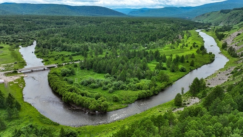 7月5日拍攝的流經(jīng)內(nèi)蒙古阿爾山國家森林公園的哈拉哈河(無人機照片)。