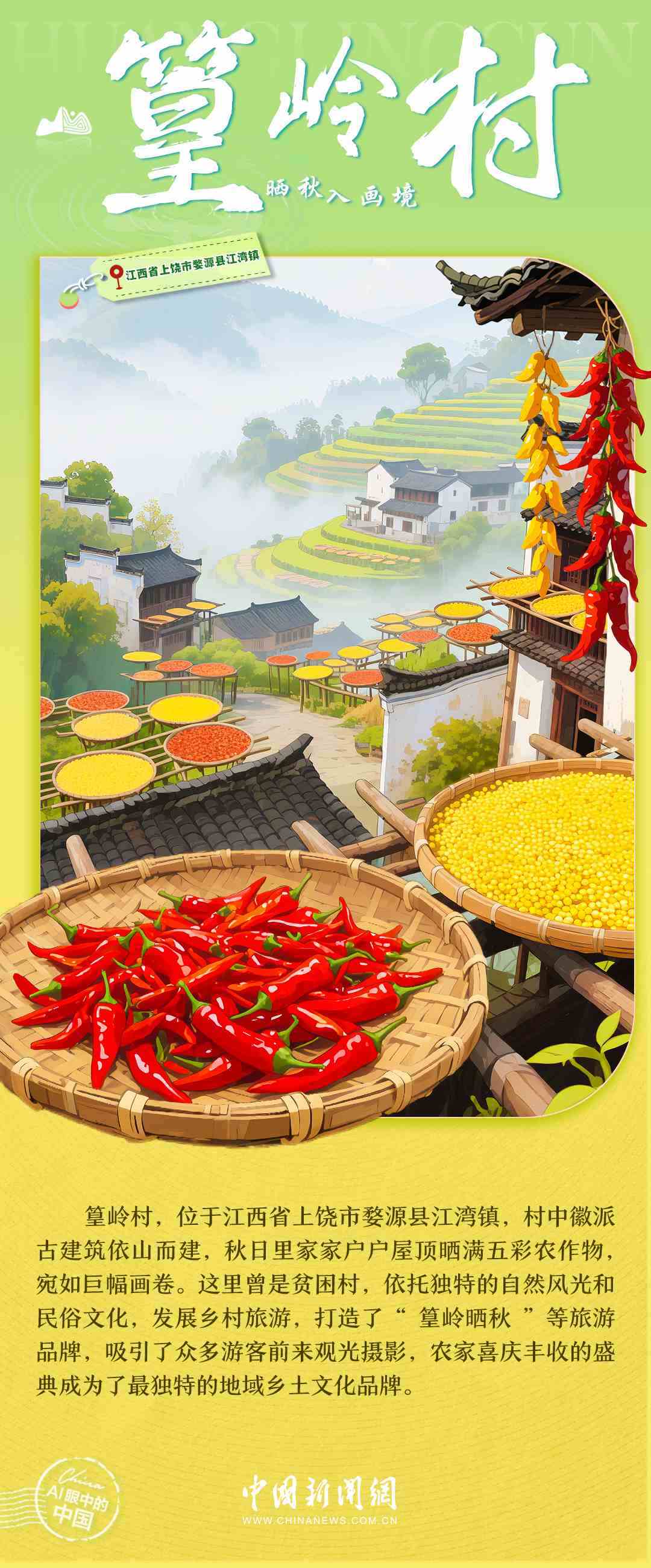 梯田的清晨,竹海的風(fēng),土樓的煙火,古寨的傍晚……中國(guó)鄉(xiāng)村正描繪出一幅產(chǎn)業(yè)興旺、生態(tài)宜居、鄉(xiāng)風(fēng)文明的時(shí)代畫卷。每一處風(fēng)景,都是中國(guó)鄉(xiāng)村全面振興的生動(dòng)注腳,每一段故事,都是探索全球鄉(xiāng)村發(fā)展路徑的中國(guó)實(shí)踐。7月6日,世界農(nóng)村發(fā)展日,讓我們一起走進(jìn)AI視野中的鄉(xiāng)村,去看看美麗中國(guó)的勃勃生機(jī)→