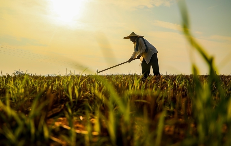 當(dāng)日是小暑節(jié)氣,農(nóng)民搶抓農(nóng)時,忙碌在田間地頭。