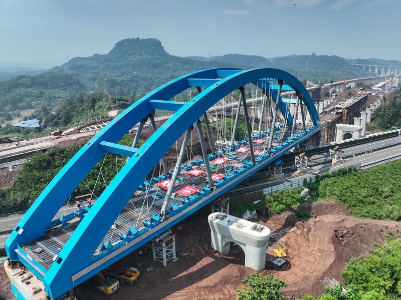 當(dāng)日,由中鐵四局承建的西渝高鐵跨營(yíng)達(dá)高速公路大橋主體平穩(wěn)落在橋墩上,標(biāo)志著全國(guó)首座高鐵大跨度網(wǎng)狀吊桿系桿拱橋頂推施工完成,為全線按期通車(chē)奠定了堅(jiān)實(shí)基礎(chǔ)。