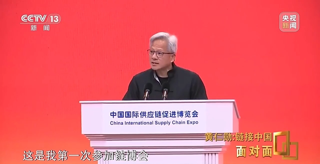 鏈博會開幕式上,黃仁勛沒有穿他那件標志性的皮衣,而是身著唐裝,并用中文開場演講。