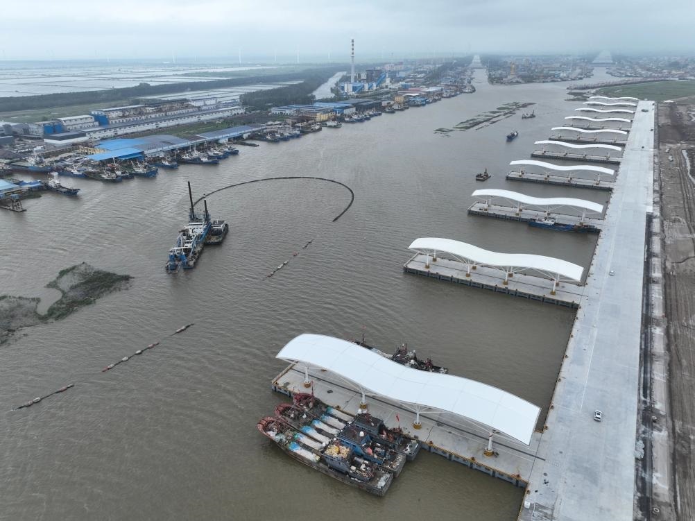 江蘇鹽城黃沙港國(guó)家中心漁港二期工程于2024年9月建成試運(yùn)營(yíng),包含2022.42米順岸碼頭、16座突堤碼頭及配套設(shè)施,是國(guó)內(nèi)首座全自動(dòng)化漁業(yè)碼頭,配備智能卸貨系統(tǒng)、水產(chǎn)品交易區(qū)、冷凍倉(cāng)儲(chǔ)等設(shè)施。