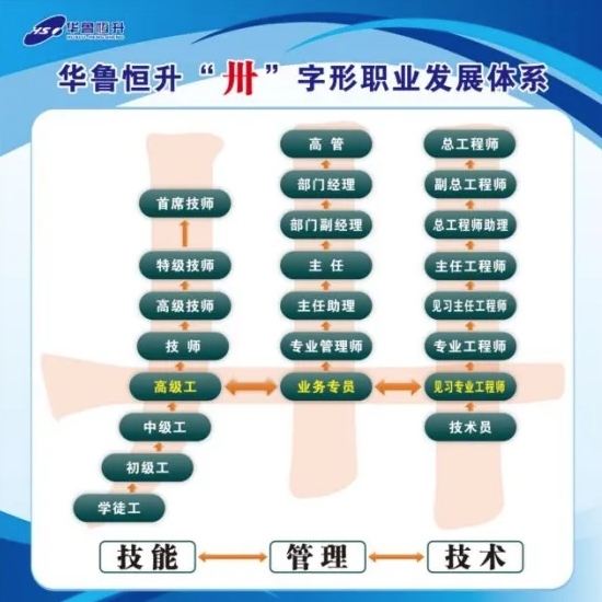 華魯恒升這個(gè)“卅”字,正是湖北總工會(huì)“卅”字形職業(yè)發(fā)展體系的縮影?!凹寄埽夹g(shù)-管理”三條事業(yè)路徑既能縱向發(fā)展又能橫向連接;既可以在任一賽道向上攀登,又能橫向貫通跨領(lǐng)域成長(zhǎng)成才。