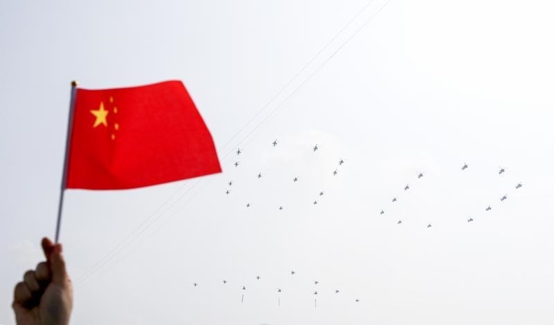 9月3日,紀念中國人民抗日戰(zhàn)爭暨世界反法西斯戰(zhàn)爭勝利80周年大會在北京隆重舉行。這是空中護旗梯隊。