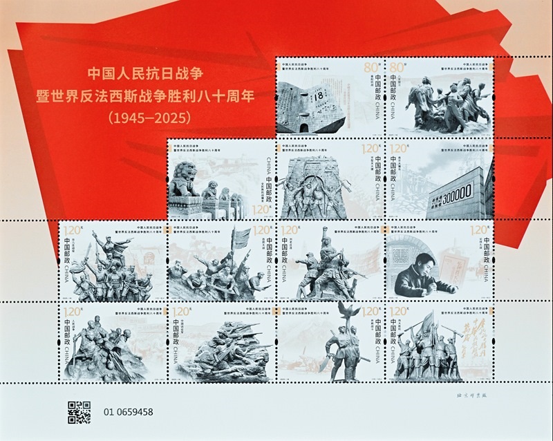 9月3日,中國郵政發(fā)行《中國人民抗日戰(zhàn)爭暨世界反法西斯戰(zhàn)爭勝利八十周年》紀(jì)念郵票1套13枚、小型張1枚,全套面值為20.8元。