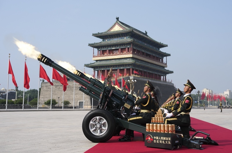2025年9月3日,紀念中國人民抗日戰(zhàn)爭暨世界反法西斯戰(zhàn)爭勝利80周年大會在北京隆重舉行。這是禮炮在天安門廣場鳴響。新華社記者 牟宇 攝