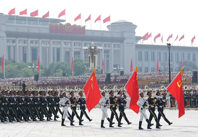 2025年9月3日,紀念中國人民抗日戰(zhàn)爭暨世界反法西斯戰(zhàn)爭勝利80周年大會在北京隆重舉行。這是戰(zhàn)旗方隊接受檢閱。新華社記者 王建華 攝