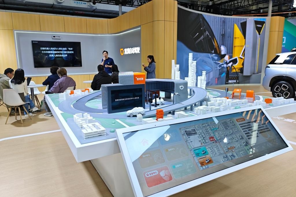 在滴滴自動(dòng)駕駛展臺,智能沙盤展示全無人Robotaxi運(yùn)營場景。新華社記者 唐詩凝 攝