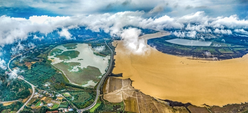 10月17日在山西省運(yùn)城市平陸縣境內(nèi)拍攝的黃河云海景觀(guān)。