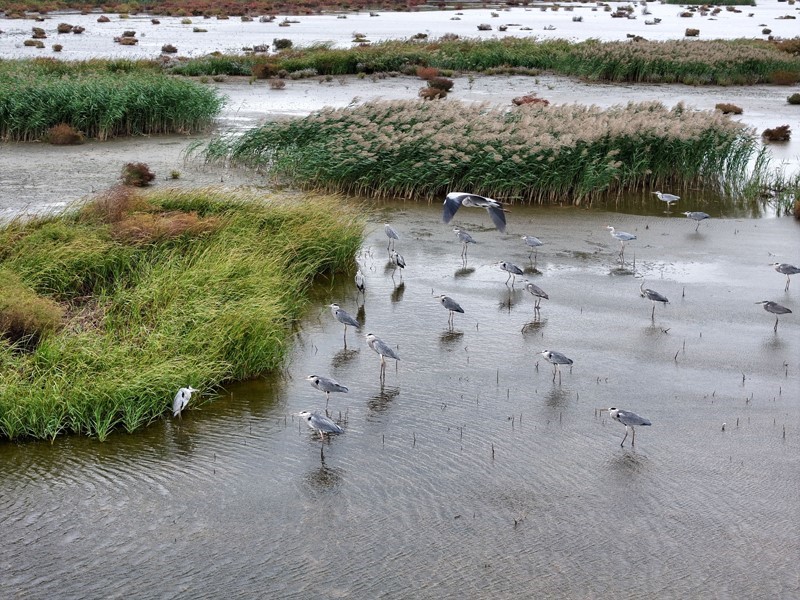 10月18日,一群候鳥(niǎo)在江蘇省連云港市海州灣國(guó)家級(jí)海洋公園濕地棲息、覓食(無(wú)人機(jī)照片)。