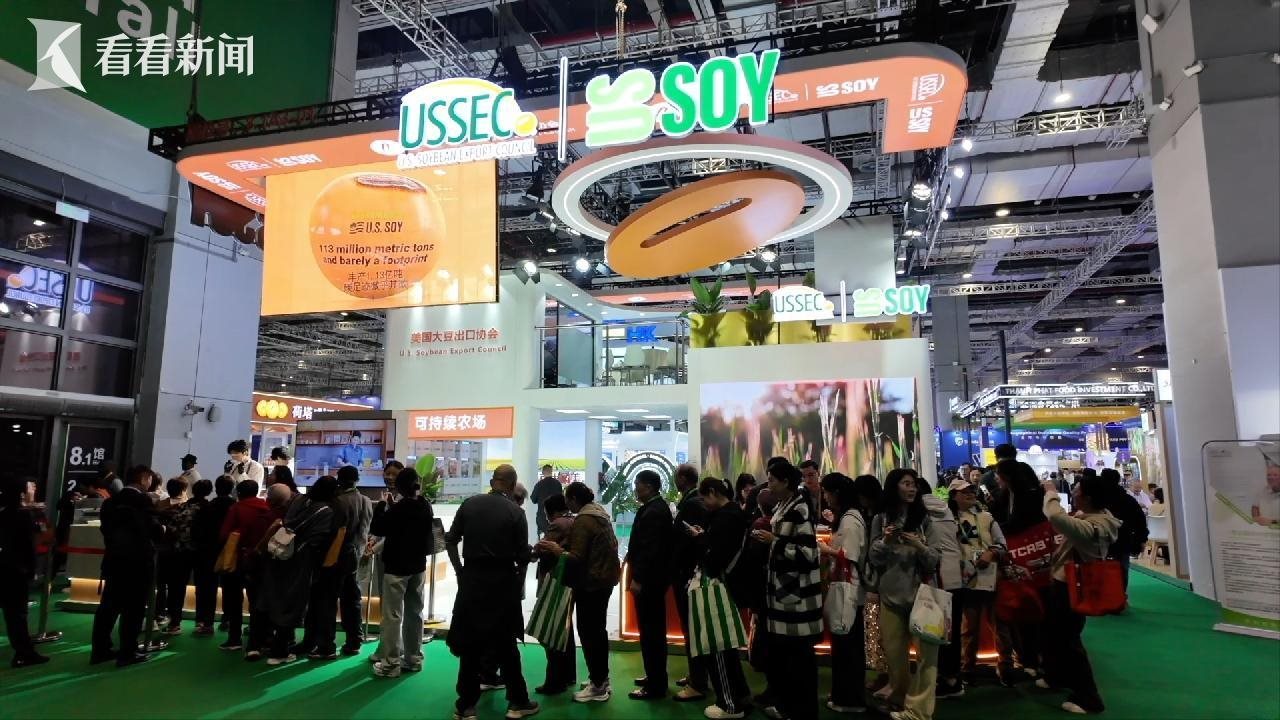蘇健說的不是客套話。進博會一開始,他的行程就滿滿當(dāng)當(dāng)——開館剪彩、客商對接、媒體專訪。他的身后,是一群帶著中文名片、中文宣傳資料的豆農(nóng),賣力帶貨?!罢绱蠹以诂F(xiàn)場看到的,我們可以把大豆加工成大豆油,這種油品更適合高溫烹飪?!泵绹罐r(nóng)蓋思凱說。