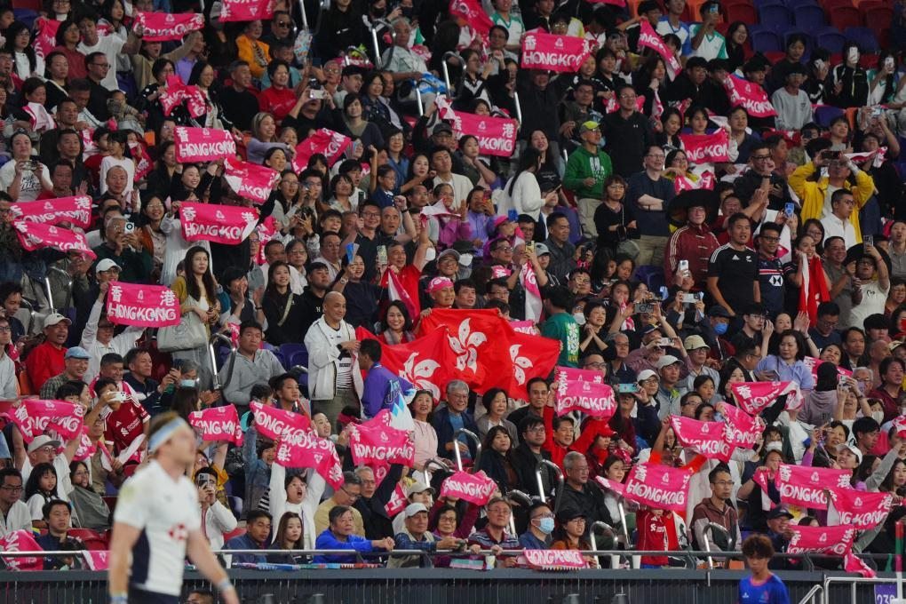 香港市民葉先生特意購(gòu)票來(lái)到啟德觀看14日晚間的七人制橄欖球比賽,為闖入決賽的香港男隊(duì)加油。“這次的橄欖球比賽在香港舉辦,我當(dāng)然要來(lái)看!”他的語(yǔ)氣中難掩激動(dòng),“在主場(chǎng)看到他們奪冠真的太開(kāi)心了!”