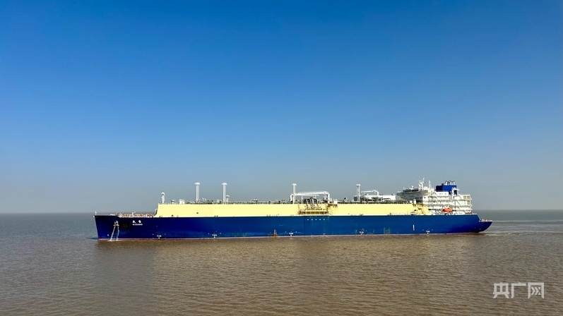 “武當”號LNG運輸船即將靠岸(央廣網記者 顧煬威 攝)