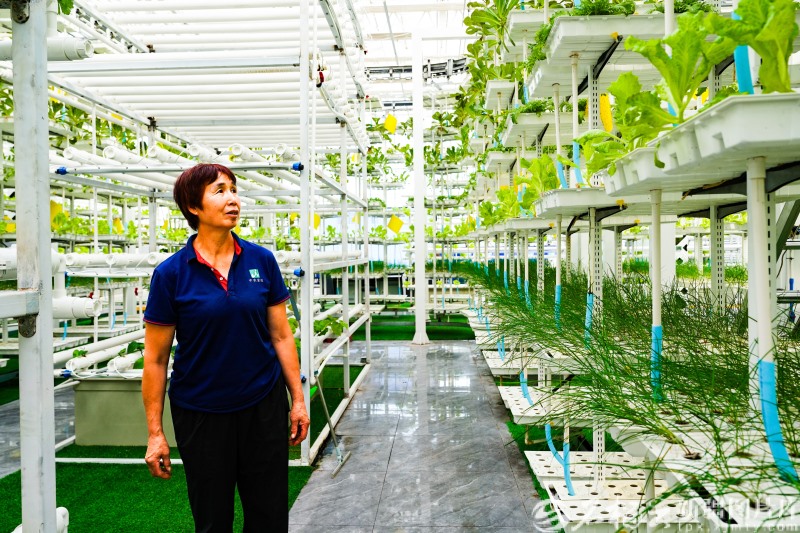 8月25日,工人在位于昌吉國(guó)家農(nóng)業(yè)高新技術(shù)產(chǎn)業(yè)示范區(qū)的新疆農(nóng)業(yè)博覽園未來農(nóng)業(yè)科技館垂直農(nóng)業(yè)展示區(qū)管理蔬菜。常誼誼攝