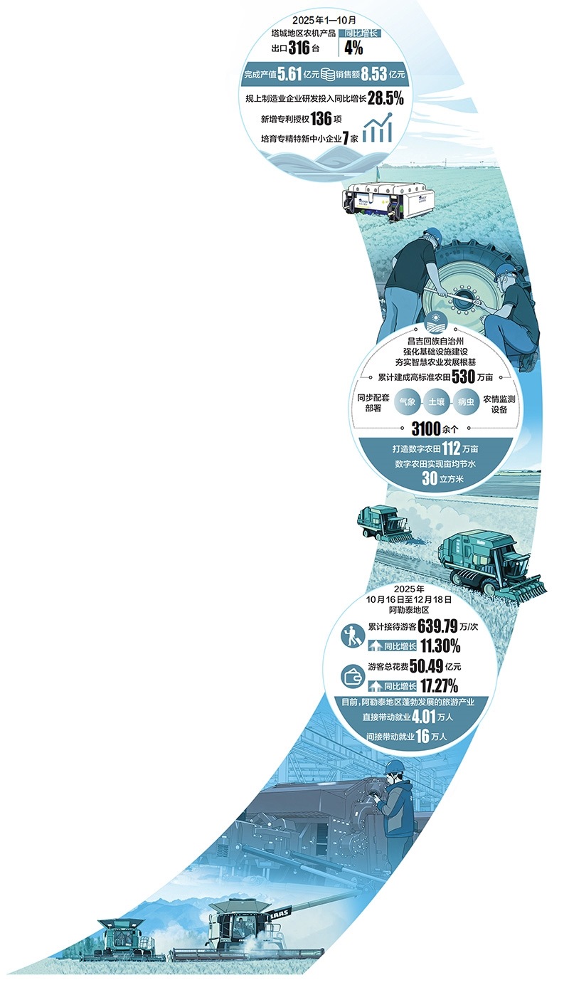 歲末之際,北疆大地處處涌動(dòng)著蓬勃生機(jī)與創(chuàng)新活力。從智能農(nóng)機(jī)產(chǎn)銷兩旺到數(shù)字農(nóng)田“云端”管理,從冰雪熱潮點(diǎn)燃消費(fèi)新引擎到物流樞紐貫通能源動(dòng)脈,一幅以“新”為底色的發(fā)展畫卷正徐徐展開。本期北疆觀察版年終盤點(diǎn),聚焦四組生動(dòng)實(shí)踐,看新技術(shù)、新產(chǎn)業(yè)、新模式如何匯聚成新質(zhì)生產(chǎn)力,為區(qū)域高質(zhì)量發(fā)展注入強(qiáng)勁動(dòng)能。