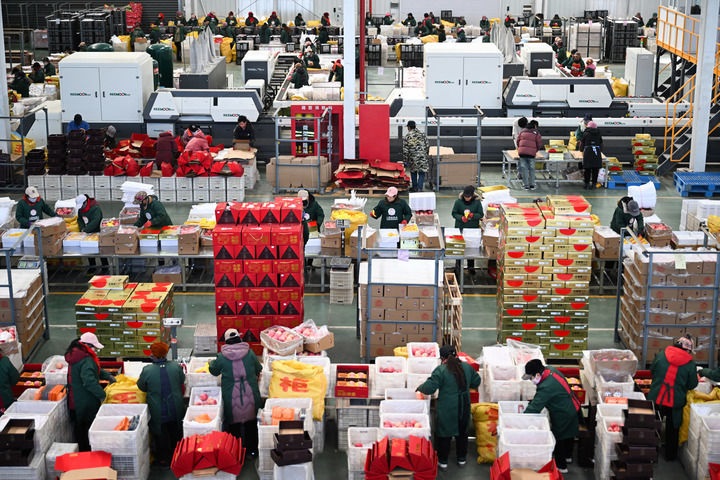 2025年1月6日,在陜西延安市洛川縣一家果業(yè)企業(yè),工作人員在生產線工作。新華社記者 張博文 攝