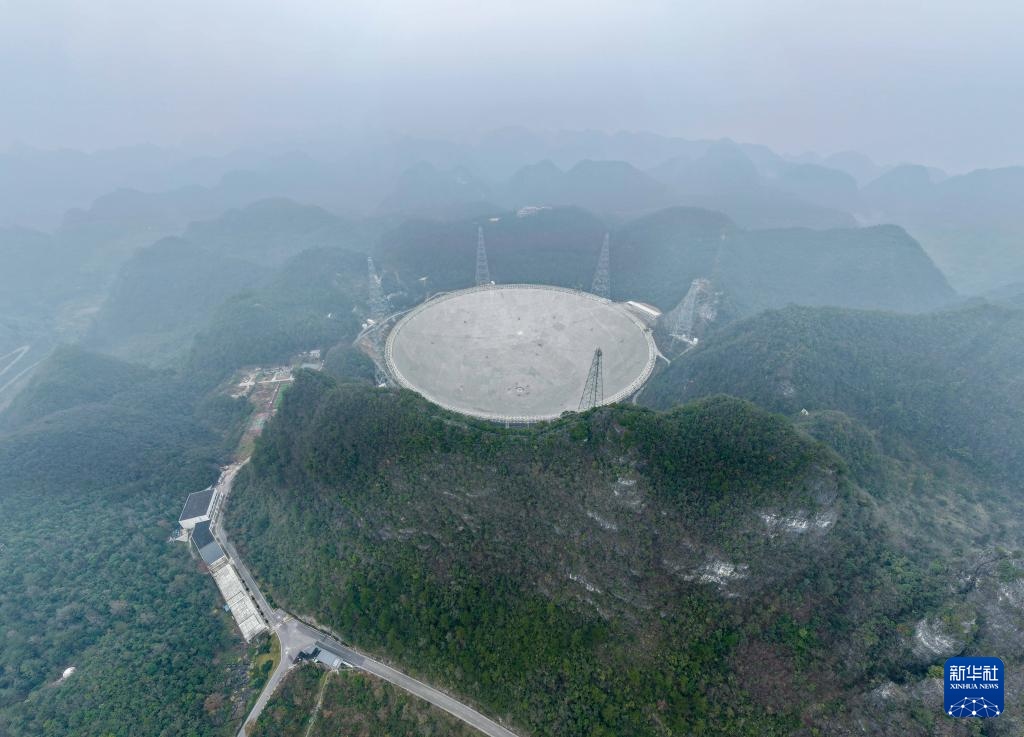 1月16日拍攝的“中國天眼”(無人機(jī)照片,維護(hù)保養(yǎng)期間拍攝)。