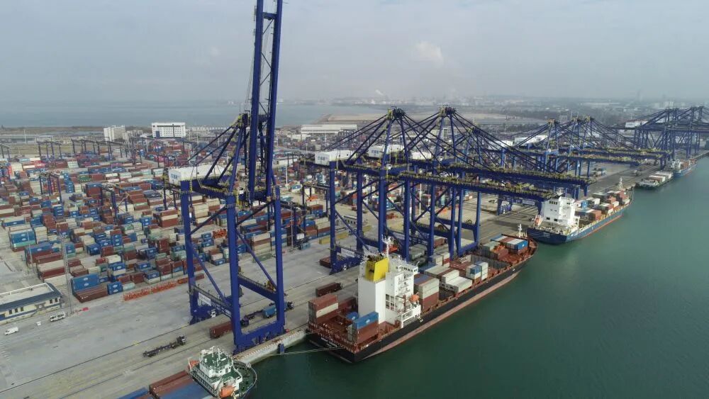 1月13日拍攝的洋浦國(guó)際集裝箱碼頭(無人機(jī)照片)。新華社記者吳茂輝 攝