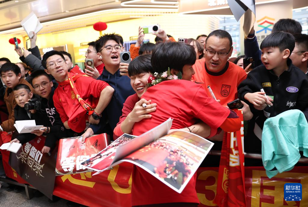 1月26日,大批球迷在機(jī)場歡迎中國隊歸來。