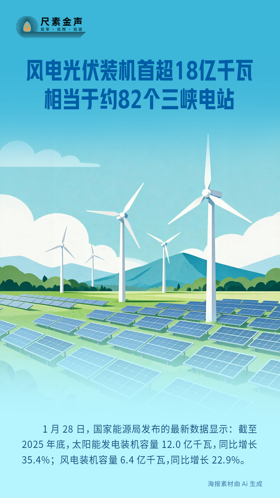 1月28日,國(guó)家能源局發(fā)布的最新數(shù)據(jù)顯示:截至2025年底,太陽(yáng)能發(fā)電裝機(jī)容量12.0億千瓦,同比增長(zhǎng)35.4%;風(fēng)電裝機(jī)容量6.4億千瓦,同比增長(zhǎng)22.9%。