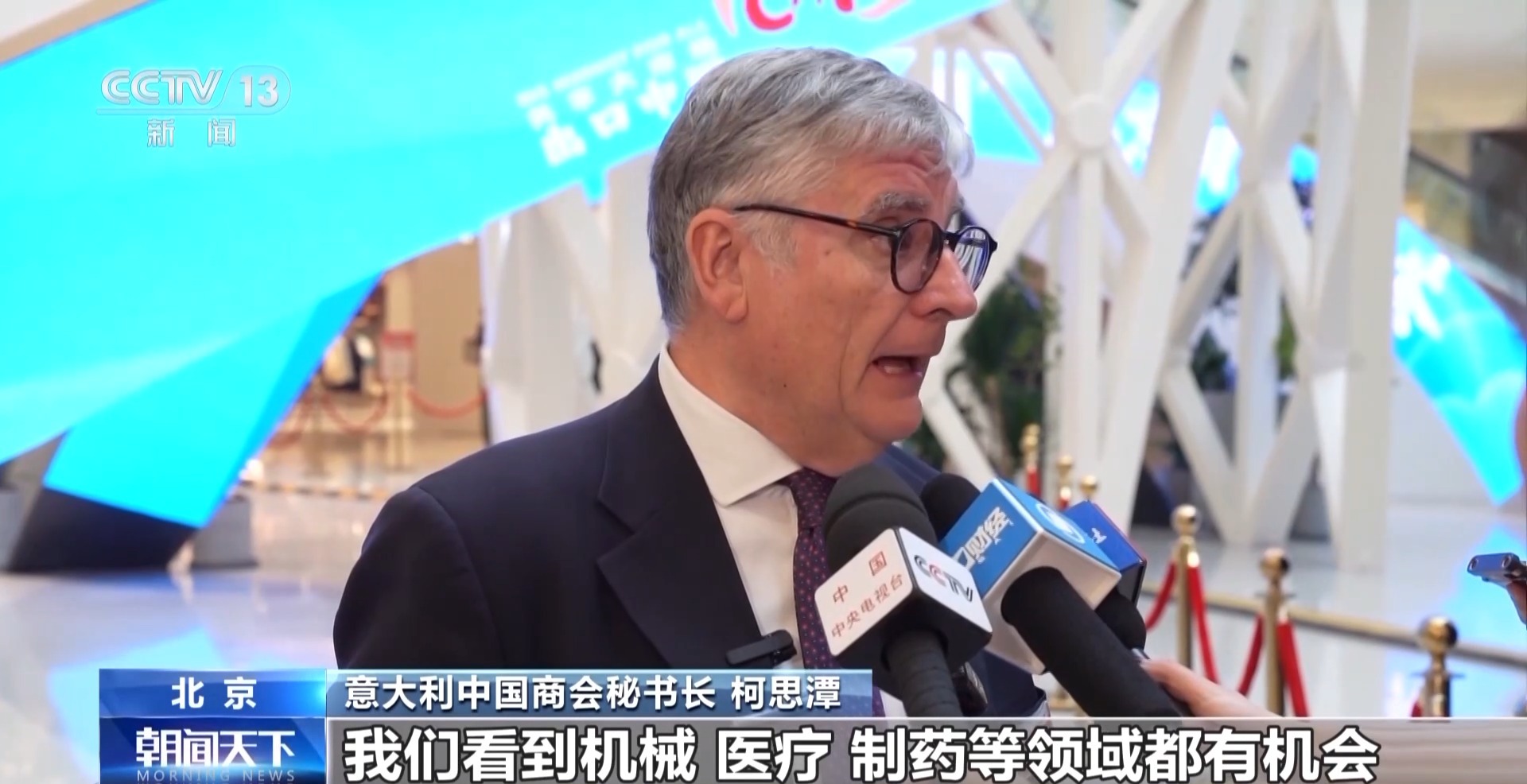 意大利中國商會秘書長 柯思潭:我們看到機(jī)械、醫(yī)療、制藥等領(lǐng)域都有機(jī)會,還有意大利傳統(tǒng)優(yōu)勢產(chǎn)品,比如時尚和設(shè)計等。未來五年中國將提振消費(fèi),這對我們來說是額外的機(jī)會。