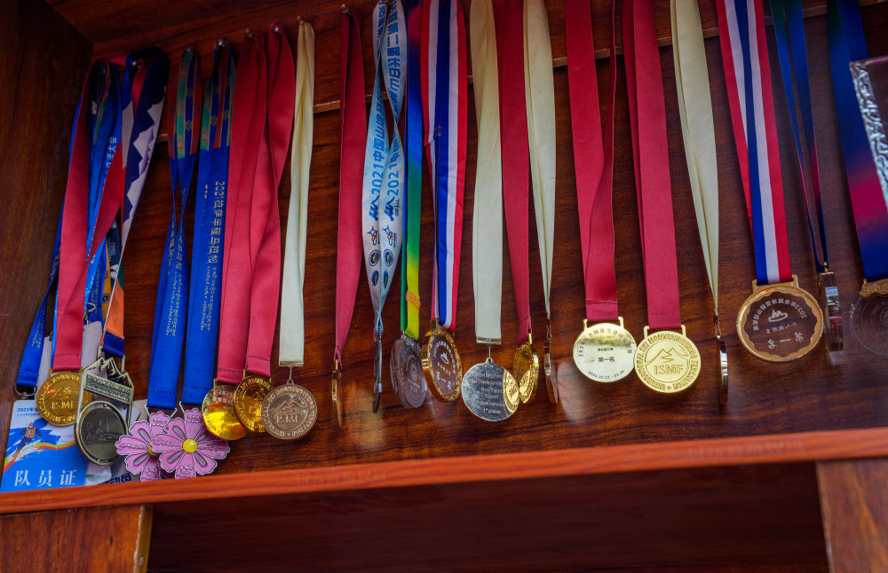次旦玉珍參賽獲得的獎牌被家人掛在家中展示(2026年2月7日攝)。新華社記者 丁增尼達 攝