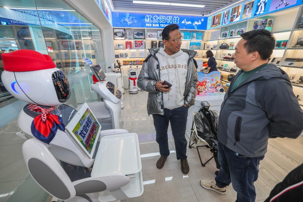 2月28日,外國客商在義烏全球數(shù)貿(mào)中心選購商品。新華社記者徐昱 攝
