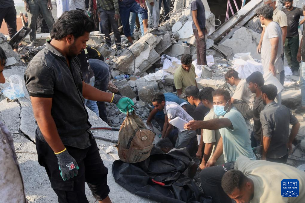 2月28日,在伊朗米納卜市一所被襲擊的小學(xué),救援人員和當(dāng)?shù)鼐用裨噲D從廢墟里營(yíng)救傷員。