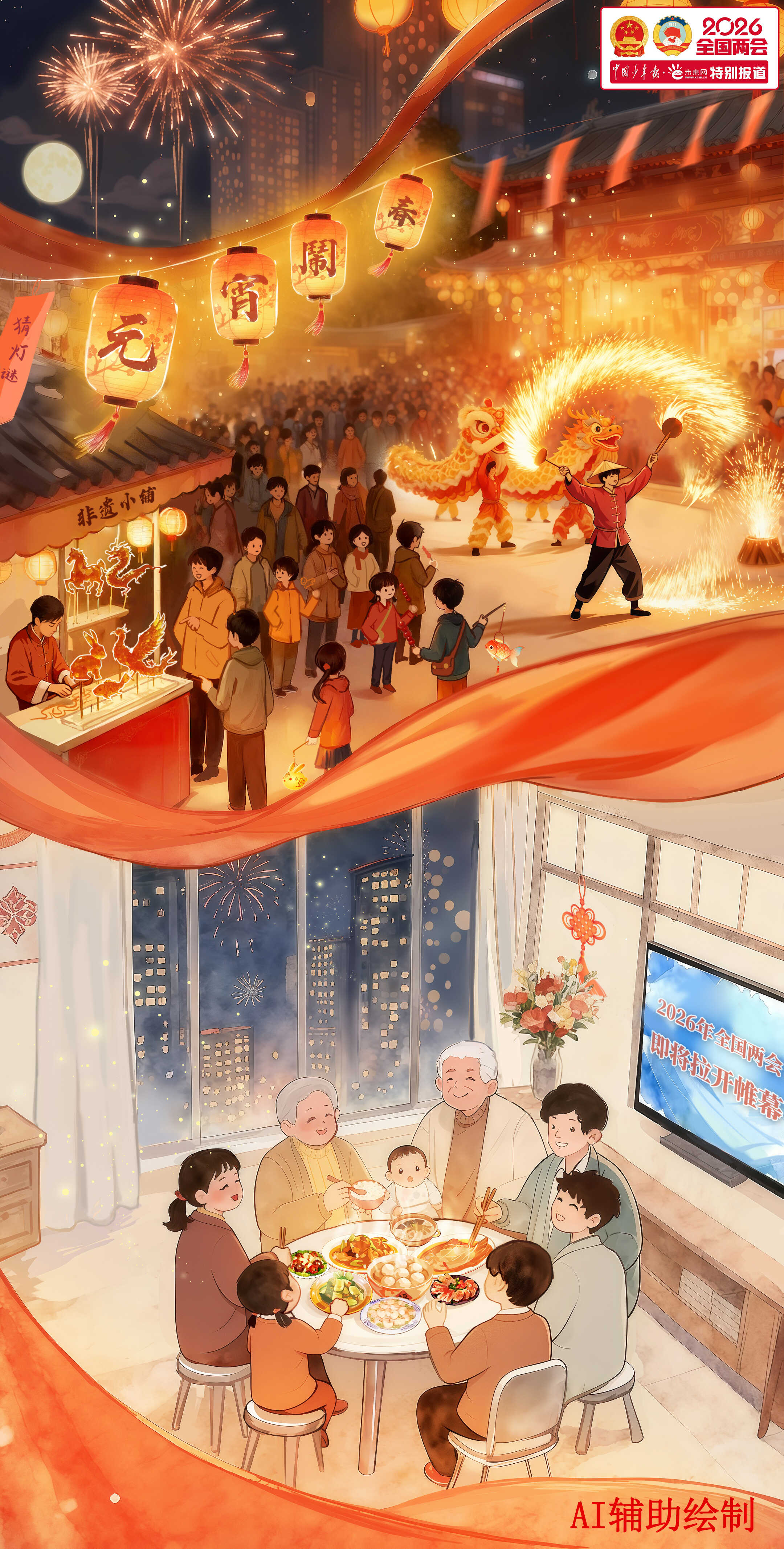 當一盞盞花燈點亮城市街巷,當一碗碗湯圓、元宵端上萬家餐桌,2026年元宵佳節(jié)如約而至。燈火璀璨處,有孩童提燈嬉鬧的歡聲笑語,有長輩圍爐話家常的其樂融融,更有無數(shù)奮斗者收拾行囊、即將奔赴遠方的身影。而在北京,一場備受關注與期待的春日盛會——全國兩會,也將在明天(3月4日)拉開帷幕。