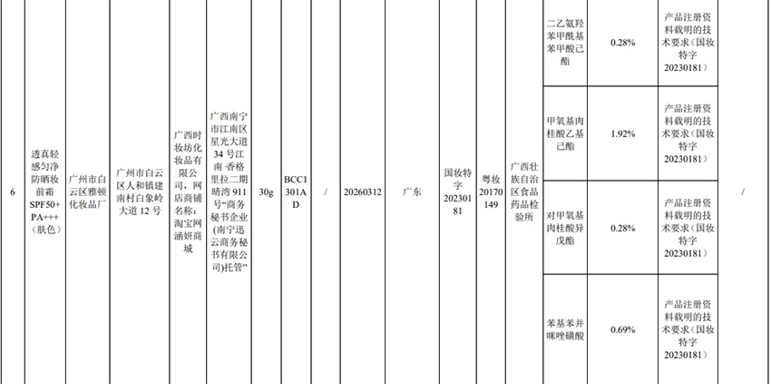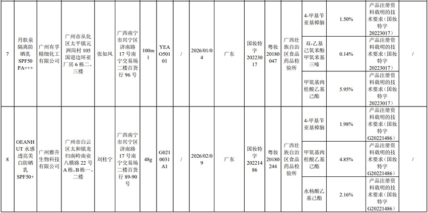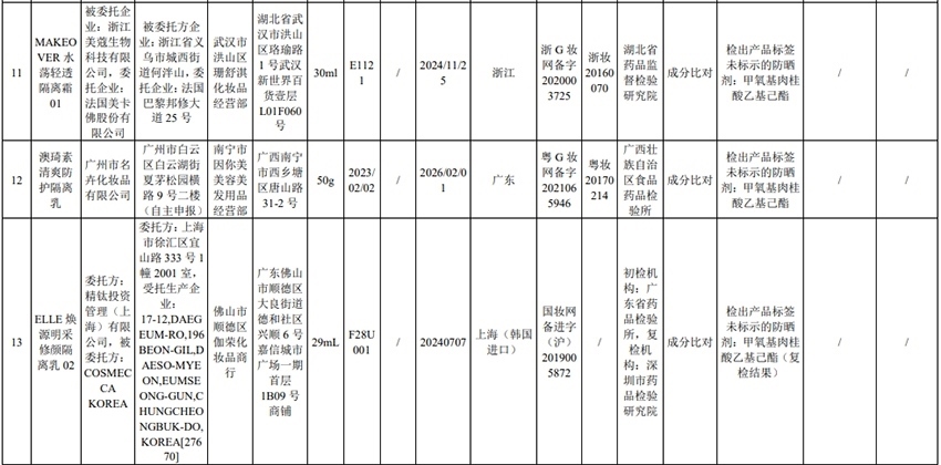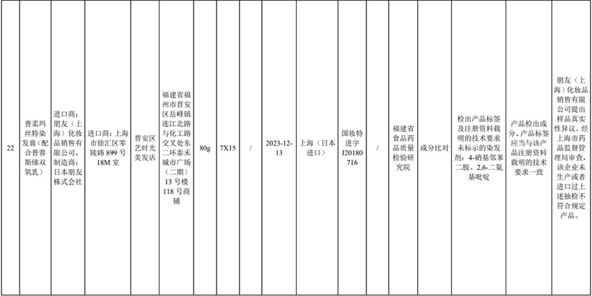 記者注意到,其中,產(chǎn)品標簽標示為歐萊雅(中國)有限公司生產(chǎn)的蘭蔻輕透水漾防曬乳(標示批號:78W200)“未檢出產(chǎn)品標簽及注冊資料載明的技術(shù)要求標示的防曬劑”;產(chǎn)品標簽標示為朋友(上海)化妝品銷售有限公司進口的普柔瑪絲特染發(fā)膏(配合普蓉斯綈雙氧乳)(標示批號:7X15)“檢出產(chǎn)品標簽及注冊資料載明的技術(shù)要求未標示的染發(fā)劑”;產(chǎn)品標簽標示為資生堂(中國)投資有限公司經(jīng)銷的安熱沙金燦倍護防曬啫喱(標示批號:1356TD)“產(chǎn)品標簽與注冊資料載明的技術(shù)要求不一致”、“未檢出產(chǎn)品標簽標示的防曬劑”、“未檢出注冊資料載明的技術(shù)要求標示的防曬劑”。