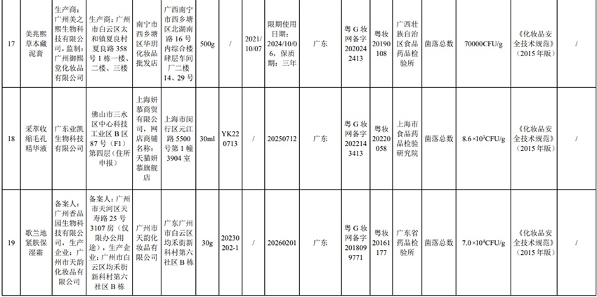 通告顯示,本次不符合規(guī)定的23批次化妝品涉及廣州市天科化妝品有限公司、廣州市鈺彩化妝品有限公司、廣州嘉瀛化妝品有限公司、廣州市白云區(qū)雅頓化妝品廠、廣州有孚精細化工有限公司、廣州雅升生物科技有限公司等,包括染發(fā)膏、防曬乳、面膜、保濕霜等產(chǎn)品。