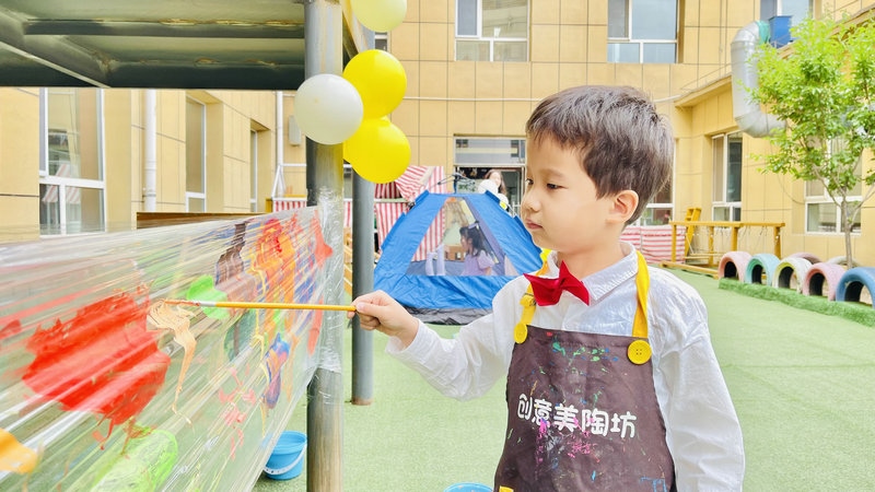 6月1日,玉泉區(qū)第二幼兒園,全體幼兒在老師的帶領下,結合幼兒園吉祥物“玉寶”和時令季節(jié)的特點,用手中的畫筆涂抹出心中的夏天。