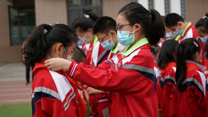 新城區(qū)北垣小學舉行一年級新生分批入隊儀式。新隊員們戴上紅領巾,走在陽光下,熠熠生輝。學校利用好“六一”這個重要時間節(jié)點,開展入隊儀式、“紅領巾獎章”頒章儀式等,用好儀式教育,構建階梯式成長激勵體系,不斷增強少先隊員的光榮感。
