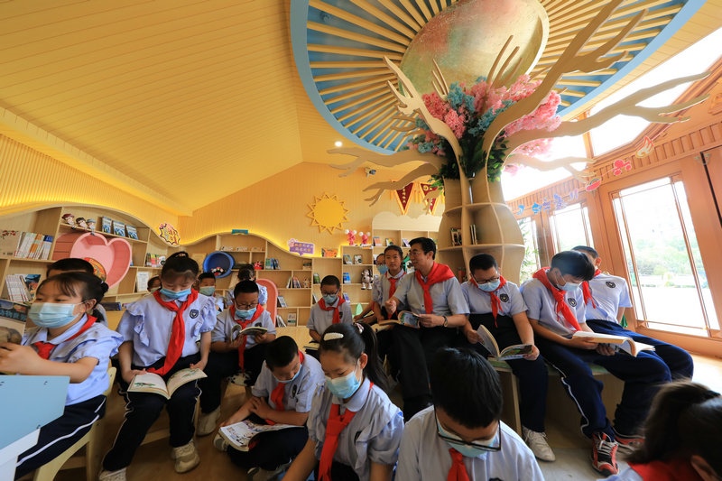 自治區(qū)道德模范楊嶺攜手蒙牛集團走進賽罕區(qū)敕勒川綠地小學騰飛路校區(qū),為那里的孩子們捐建悅讀吧。